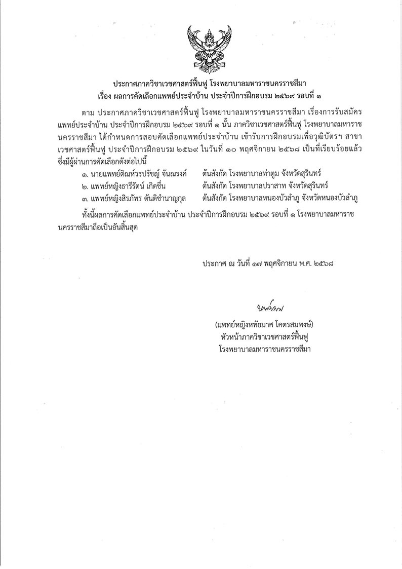 หรือในกิจกรรมอื่นของศูนย์แพทยศาสตรศึกษาชั้นคลินิกและโรงพยาบาลมหาราชนครราชสีมา