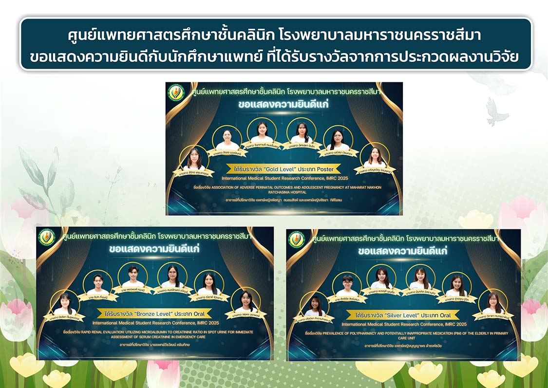 หรือในกิจกรรมอื่นของศูนย์แพทยศาสตรศึกษาชั้นคลินิกและโรงพยาบาลมหาราชนครราชสีมา